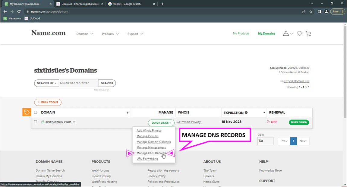 In Phase 2 we set up an account with Name.com and registered a domain name. We are now going to go back to Name.com and complete the configuration of our domain by assigning it to our servers IP address.